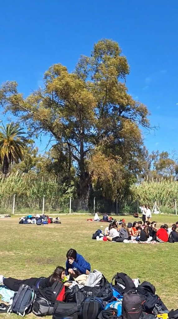 Desde temprano, el predio se fue llenando de risas, equipos y grupos preparándose para pasar un día distinto. El clima era ideal y todos estaban con muchas ganas de disfrutar. Los profes de Educación Física habían organizado diferentes propuestas para que todos pudieran participar: torneos relámpago de fútbol y vóley, juegos grupales, estaciones recreativas y también lugares de descanso. La idea era que cada curso pudiera elegir qué hacer y compartir con otros compañeros, mezclándose entre años.