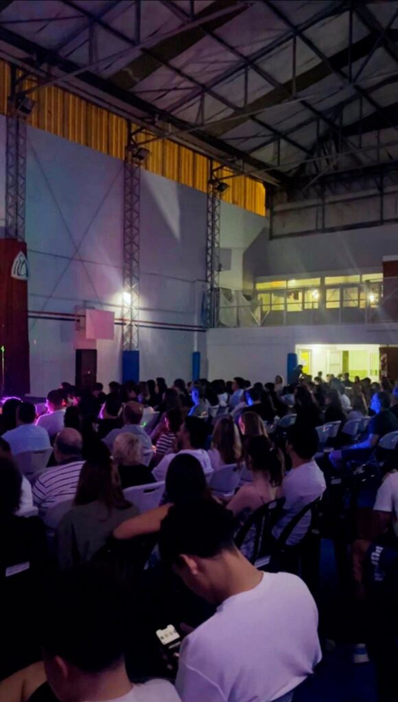 La actividad comenzó con dos funciones consecutivas en las salas del colegio para ver los cortometrajes, tráilers y afiches creados por los estudiantes, quienes basaron sus producciones en libros trabajados en Lengua y Literatura a lo largo de la secundaria. Las proyecciones contaron con una importante presencia de familias, docentes, directivos y estudiantes de otros cursos que se acercaron para acompañar el cierre del proyecto anual. Tras las funciones, los invitados fueron guiados hacia el gimnasio, espacio preparado especialmente para la ceremonia, que contó además con la presentación de la banda Etérea, integrada por alumnos del colegio. Entre cada instancia se ofrecieron empanadas y gaseosas, con un buffet a total beneficio de Acción Solidaria, iniciativa que también tuvo una destacada colaboración de alumnos.