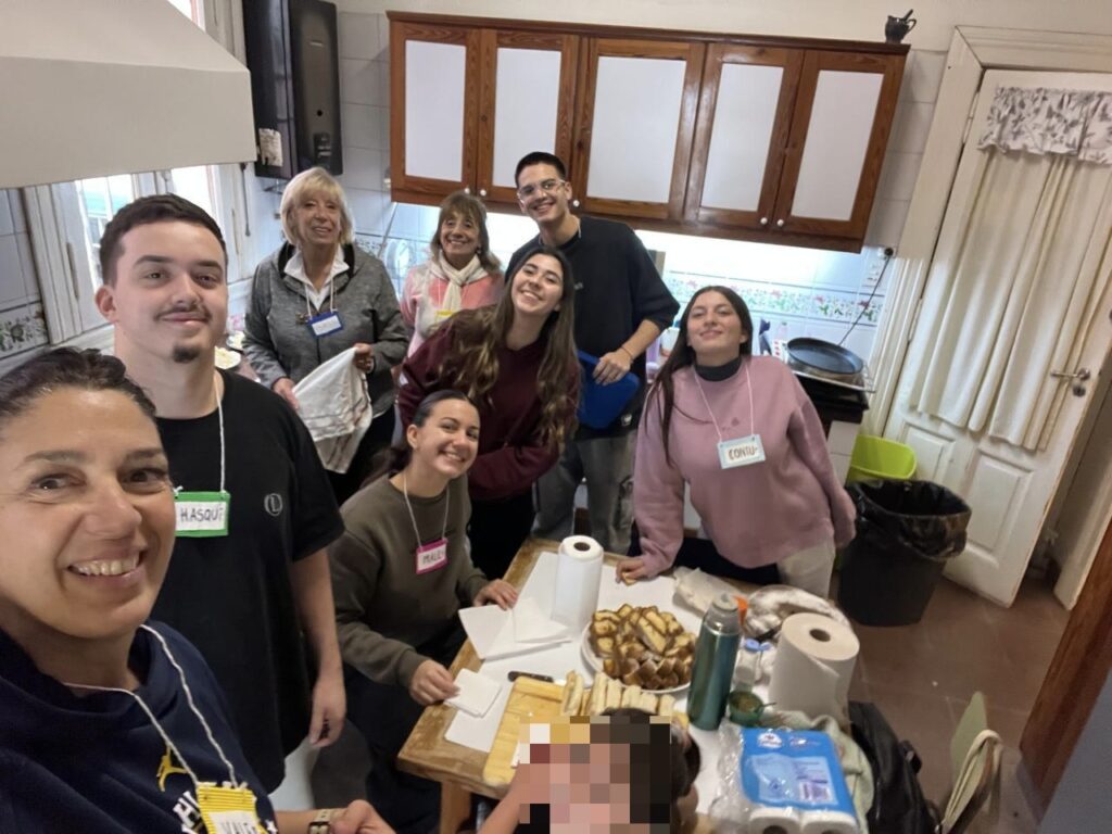 Actualmente, se visita al hogar Pascual Crudo en Pontevedra y reciben en el colegio a los chicos del hogar Nomadelfia de El Pato. Las actividades comienzan alrededor de las ocho y media de la mañana, con un desayuno compartido. Luego se realizan juegos recreativos, actividades deportivas, manualidades, acompañamiento escolar y lectura de cuentos. El almuerzo es un momento clave donde los chicos comparten la mesa con los exalumnos y se generan conversaciones y vínculos. A lo largo de la jornada también hay tiempo para merendar y cerrar el día con una reflexión grupal.